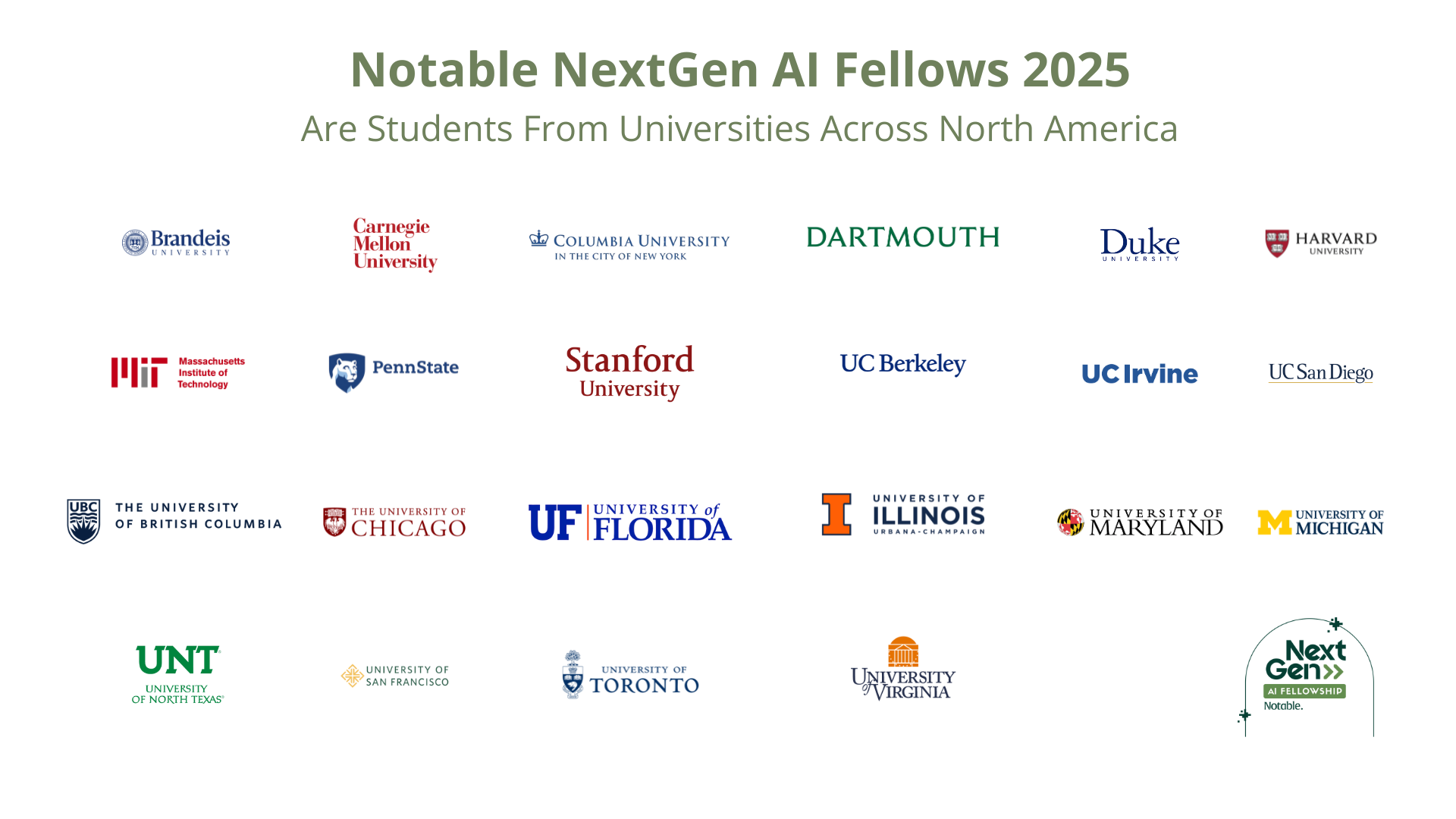 That’s why we’re excited to introduce the 2025 NextGen AI Fellows. The NextGen AI Fellowship is designed to find talented undergraduate and graduate students from across North America and help prepare them to build the next generation of tech companies, using AI.